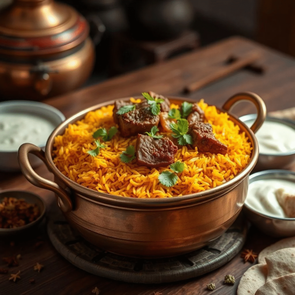 El Biryani Hyderabadi es mucho más que un plato; es el legado viviente de los Nizams de Hyderabad, quienes durante siglos refinaron esta obra maestra culinaria hasta convertirla en símbolo de hospitalidad y abundancia. Nacido en las cocinas del palacio Chowmahalla en el siglo XVIII, este biryani representa la fusión perfecta entre la tradición persa traída por los mogoles y los sabores intensos del Decán indio.